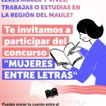 En el marco de la conmemoración del “Mes de la Mujer”, la dirección regional del Servicio Nacional de la Mujer y la Equidad de Género (SernamEG Maule), está invitando a las mujeres del territorio maulino a participar en la segunda versión del Concurso Literario “Mujeres Entre Letras”, una convocatoria que busca visibilizar, y difundir la escritura femenina a través del cuento en cien palabras.